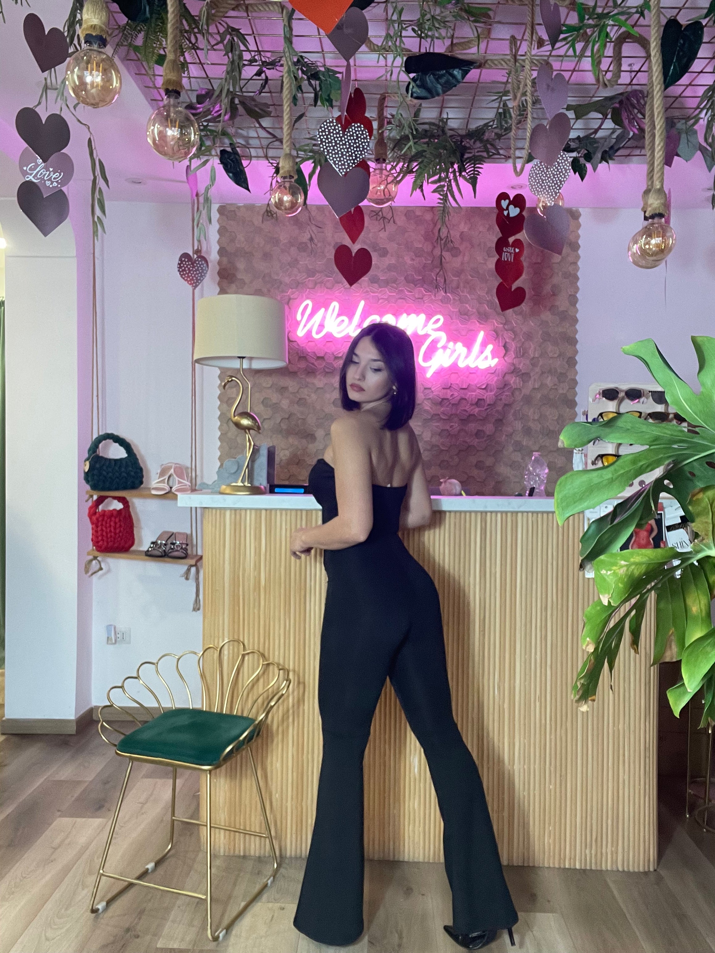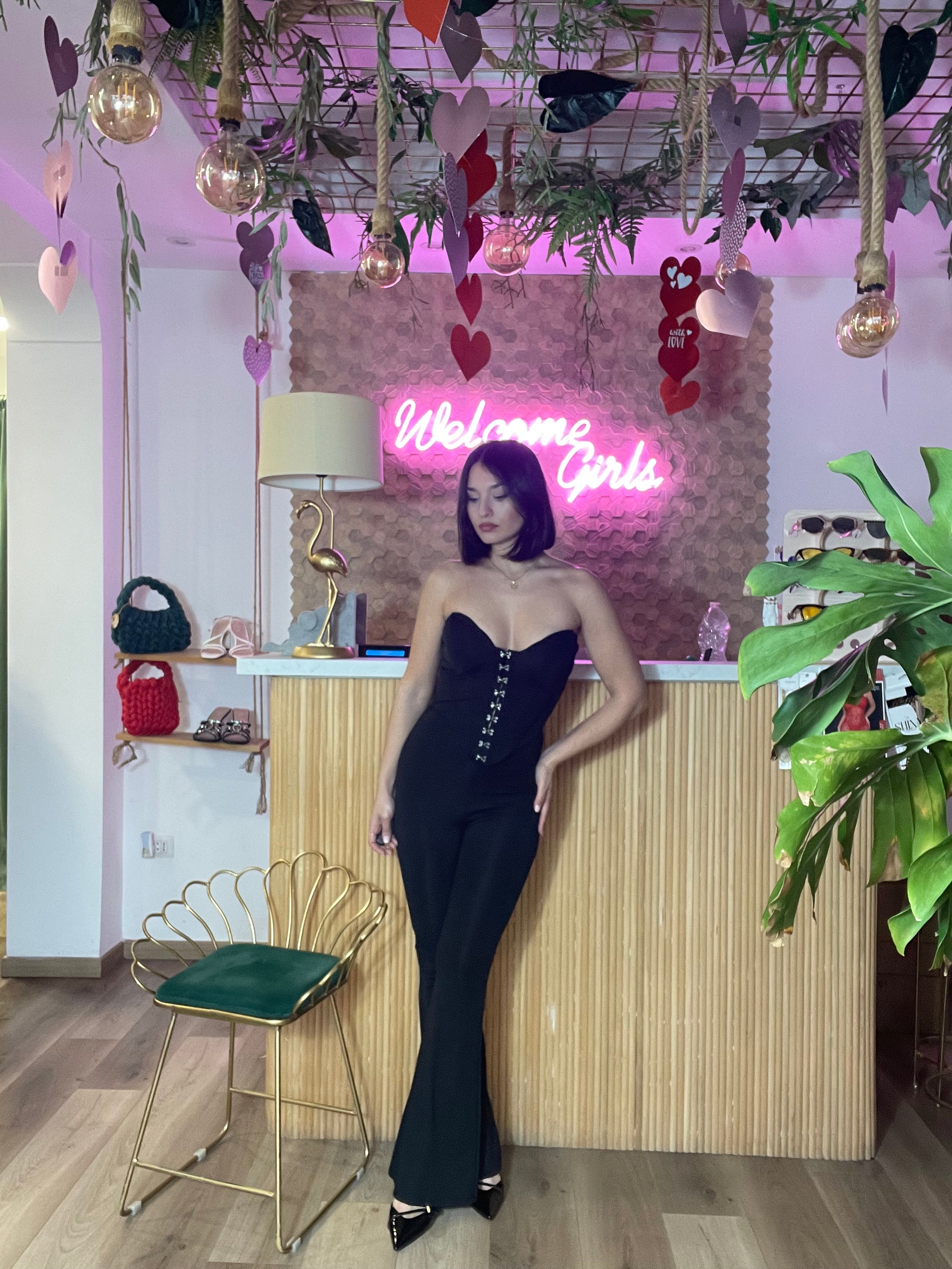 Il Jumpsuit corset Gancetti è una tuta a zampa elasticizzata e super fasciante, progettata per adattarsi a diverse silhouette, dalla taglia XS alla L. I gancetti apribili sul davanti offrono una regolabilità funzionale, migliorando il comfort e la vestibilità, rendendo questo capo ideale per molteplici occasioni.