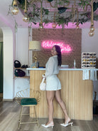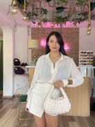 Questa tutina Chic è perfetta per ogni taglia, dalla XS alla L. Grazie alla sua vestibilità elasticizzata e alla sua finitura effetto camicia velata, si adatta perfettamente al tuo corpo. Non importa quale sia la tua taglia, sarai sempre chic e comoda con questa tutina. Altezza modella 170cm.