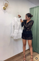 Realizzata in morbido pizzo elasticizzato, la Tutina Weekend è il capo di abbigliamento perfetto per un look comodo e chic. La taglia unica veste dalla XS alla L, rendendola adatta a tutte le forme del corpo. Aggiungi un tocco di eleganza al tuo weekend con questa tutina versatile.