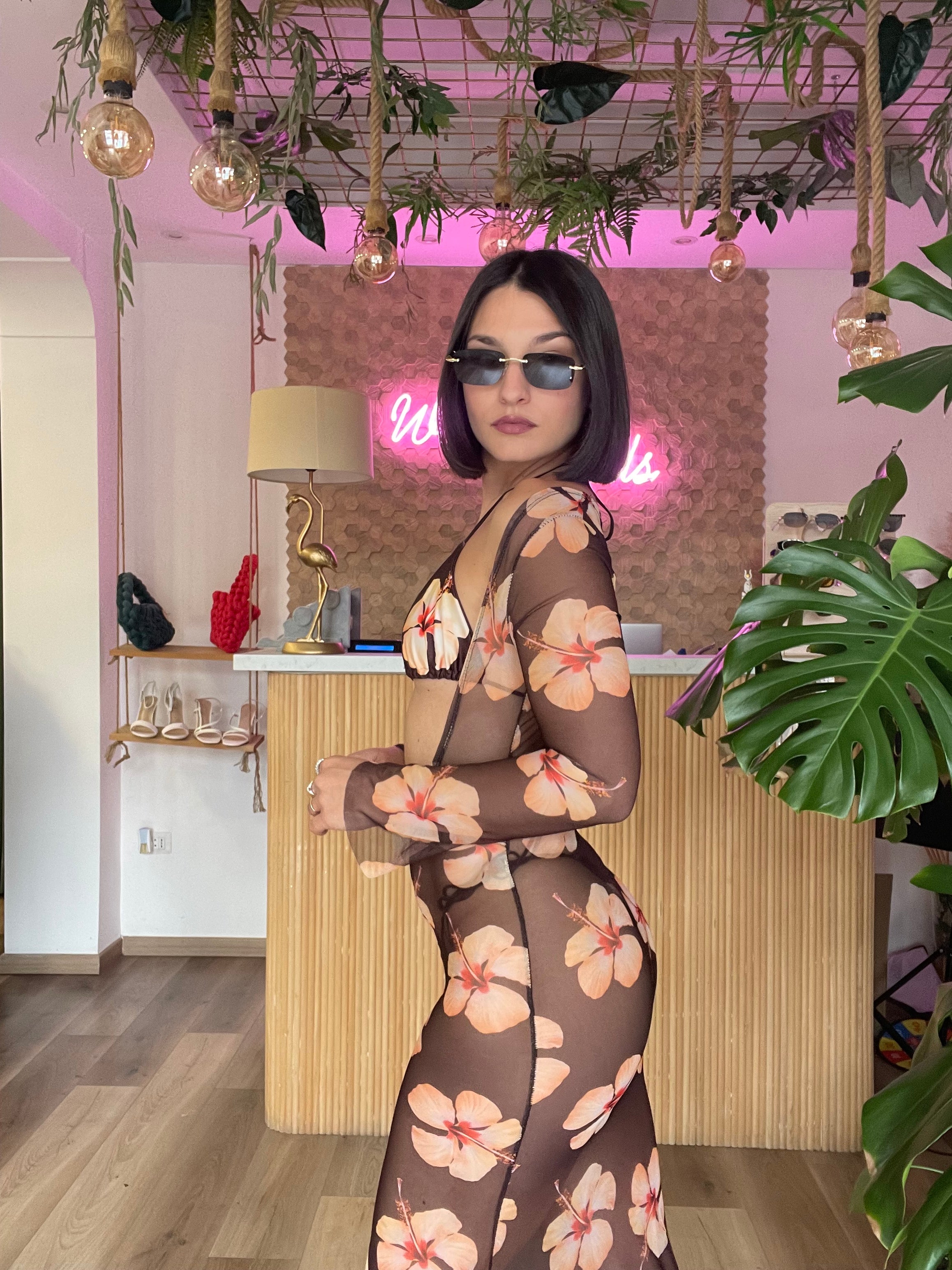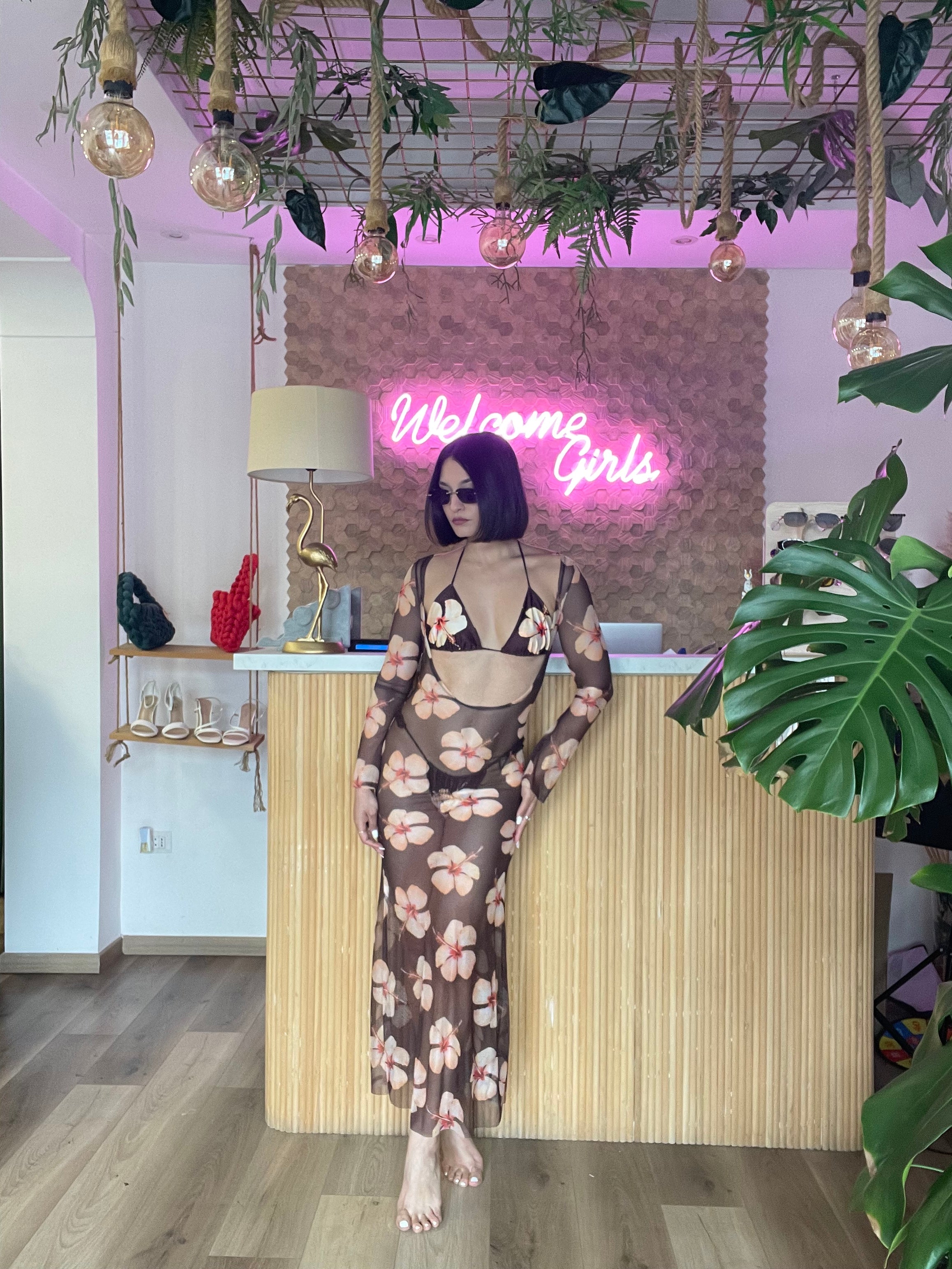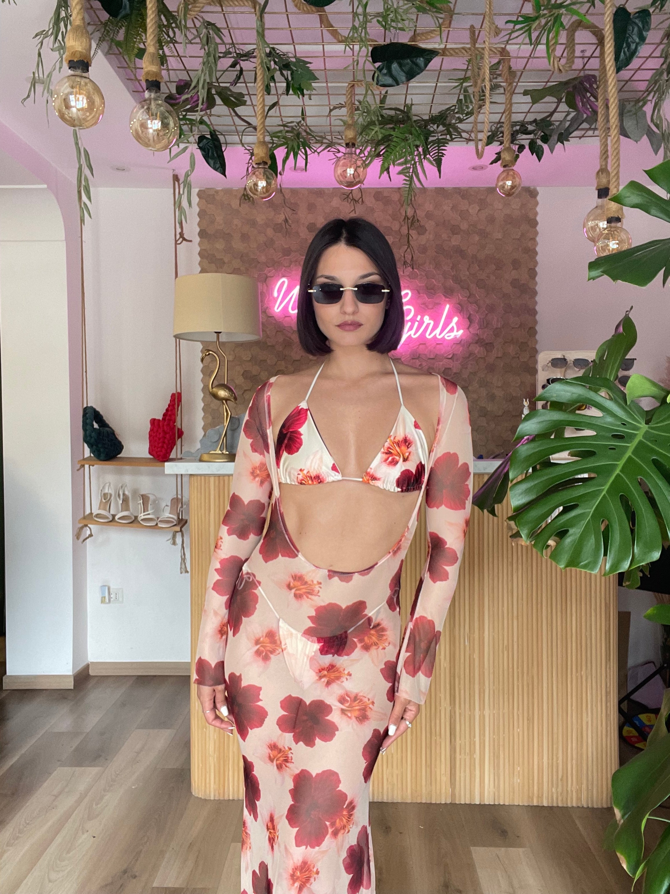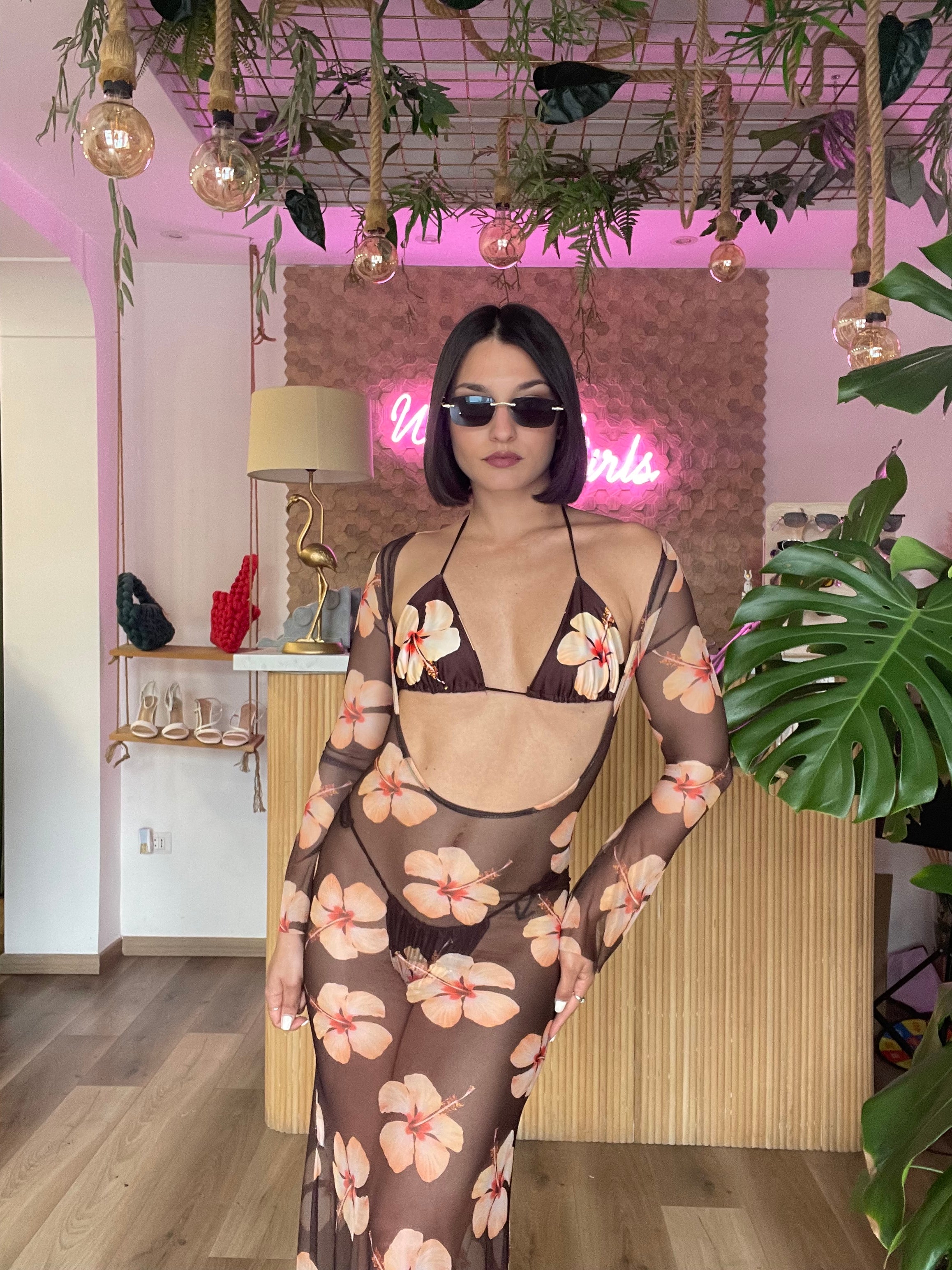 Il set bikini Flowers è composto da un triangolo brasiliano e un abito trasparente, entrambi progettati in taglia unica elasticizzata con laccetti regolabili. Questo design versatile si adatta comodamente a chi indossa dalla taglia XS alla M, garantendo una vestibilità ottimale e un comfort duraturo.