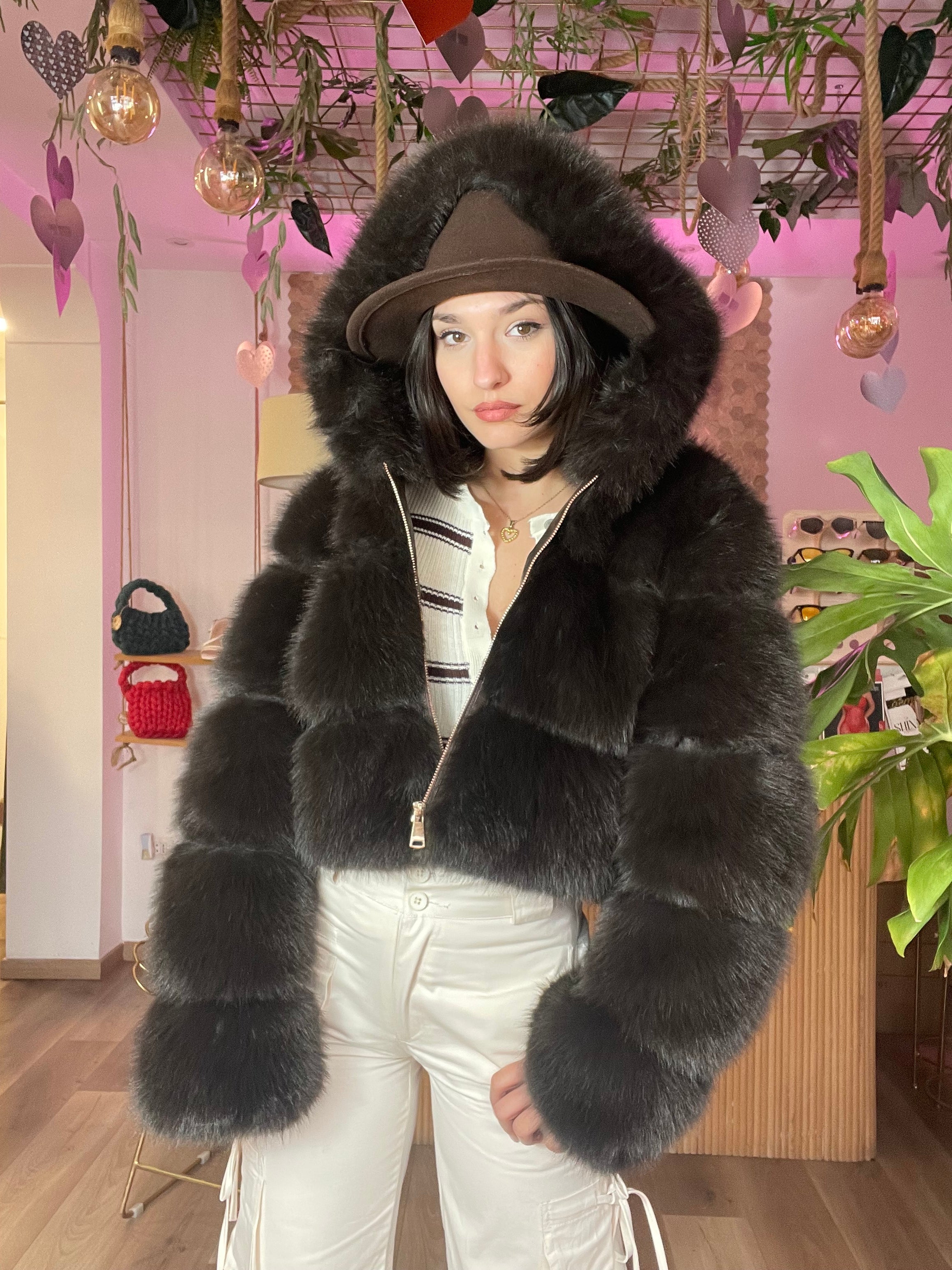 L'Ecofur Brownies è un capo versatile e caldo, realizzato con un materiale ecologico. La sua foderatura interna offre un isolamento efficace e confortevole, mentre la taglia unica, adatta da XS a L, garantisce una vestibilità favorevole per diverse silhouette.