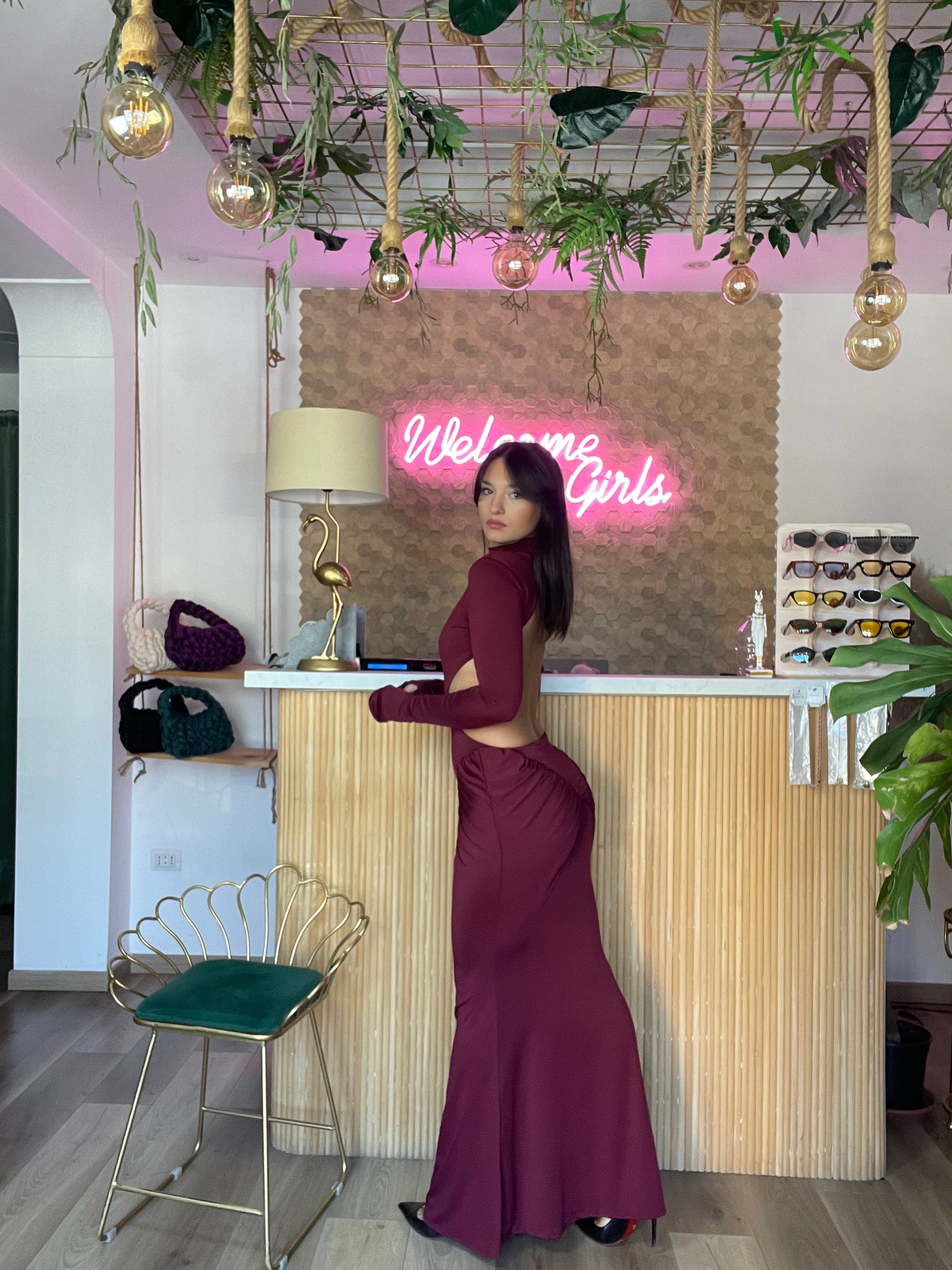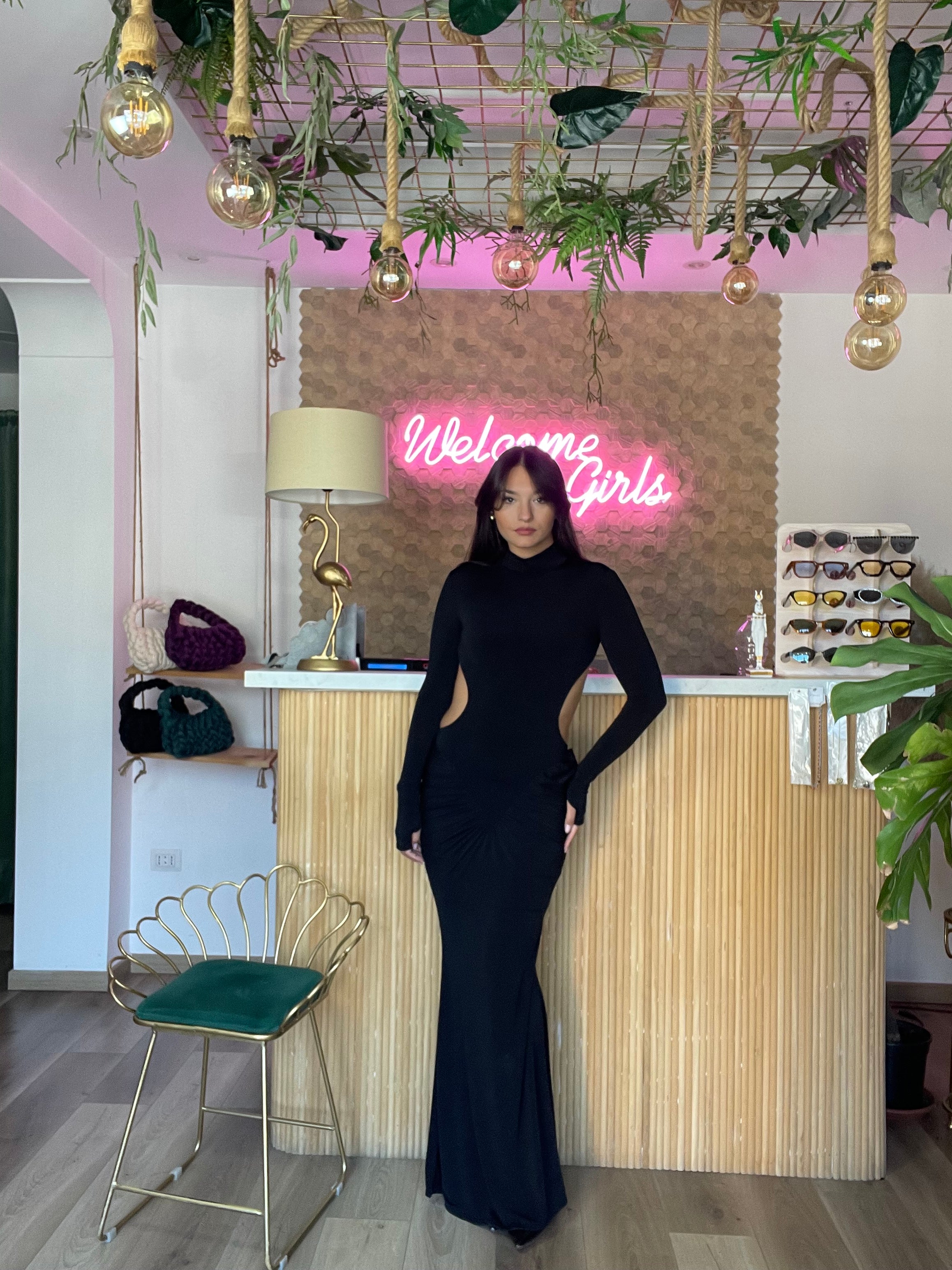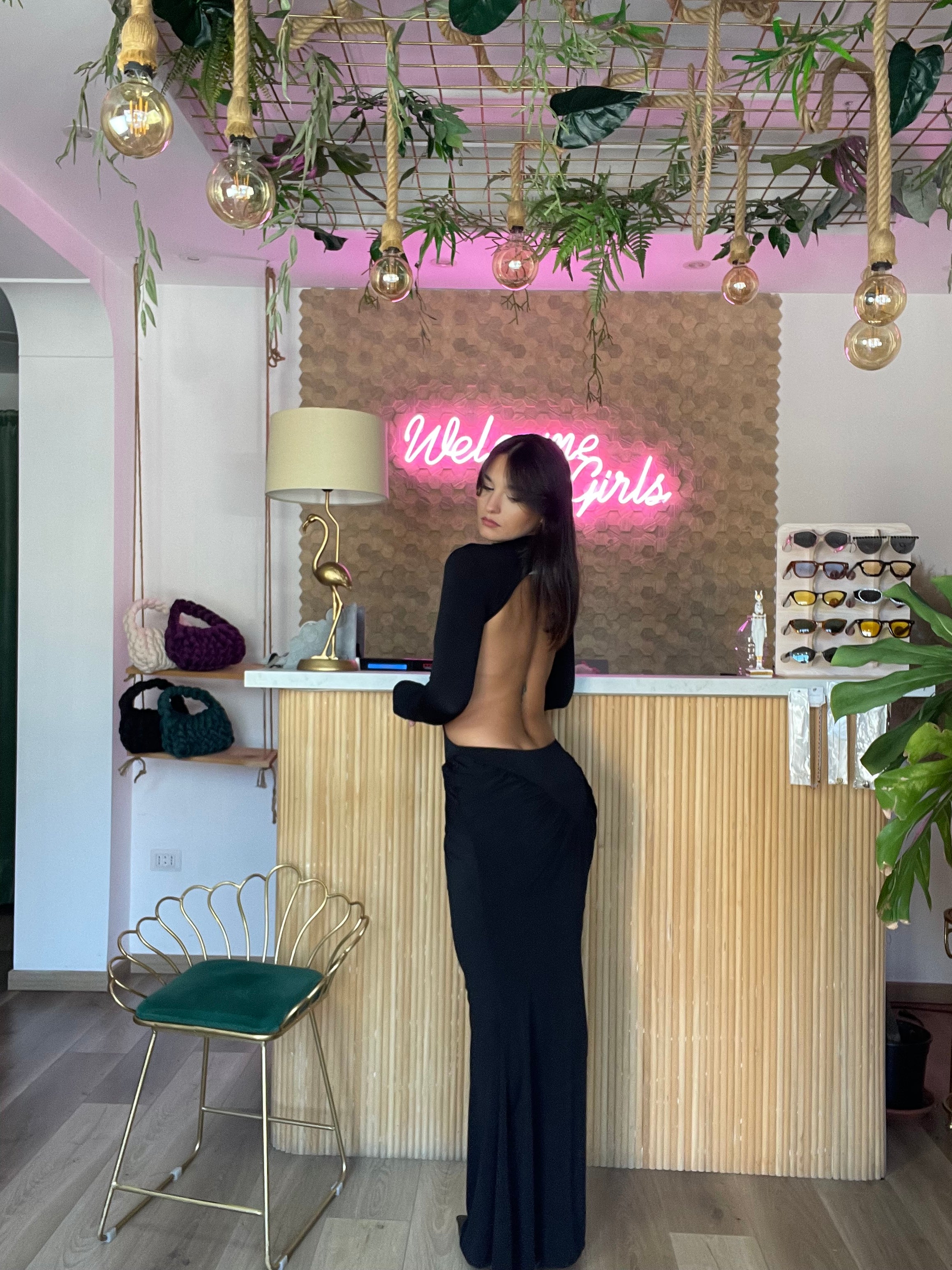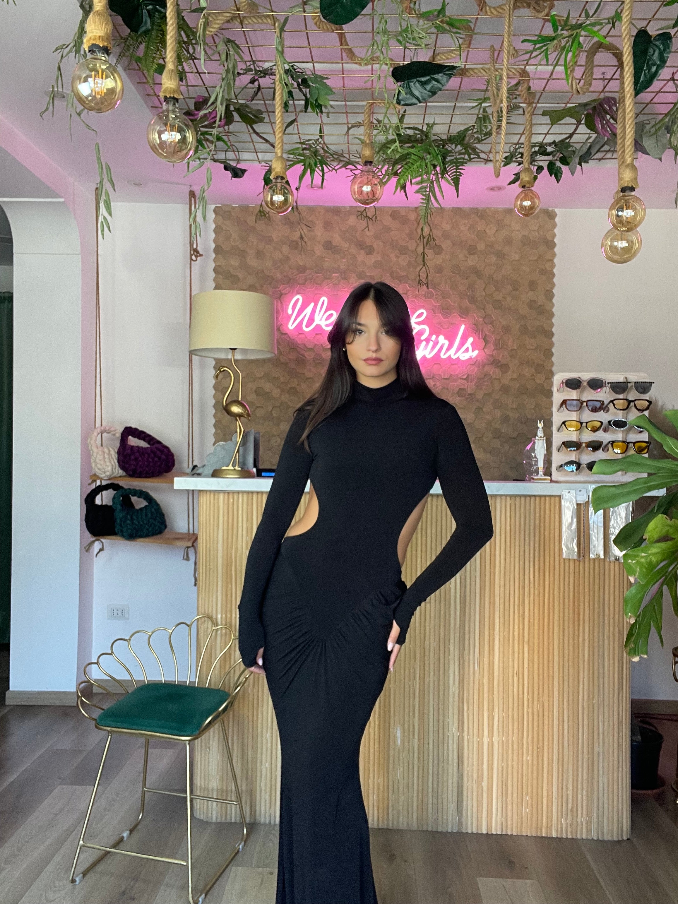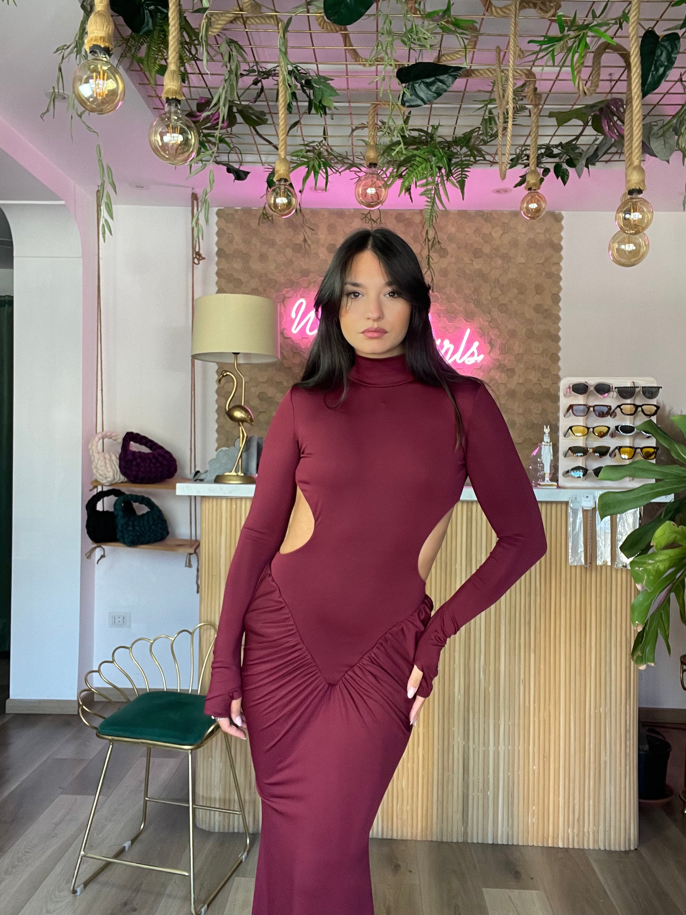 Questo elegante abito manica lunga è disponibile in taglia unica e si adatta dalla XS alla L grazie alla sua elasticità. Il design drappeggiato dei manicotti e lo scollo profondo sul retro aggiungono un tocco di classe a questo abito. Indossalo per sentirti sempre elegante e confortevole. Altezza modella 170cm.