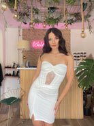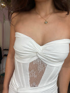 Questo abito è realizzato in morbida lycra e presenta un elegante nodo e coppa preformata, con un dettaglio di pizzo al centro. Grazie alla taglia unica, il vestito si adatta perfettamente dalla XS alla L. Aggiungi un tocco di eleganza al tuo look con questo abito versatile e confortevole.